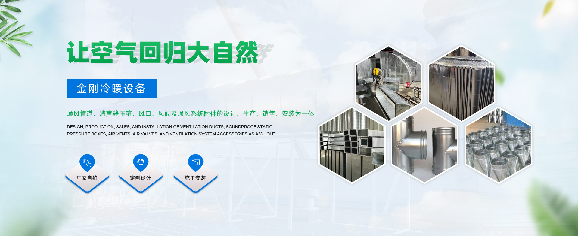重慶金剛冷暖設(shè)備有限公司是集通風(fēng)管道、消聲靜壓箱、風(fēng)口、風(fēng)閥及通風(fēng)系統(tǒng)附件的設(shè)計(jì)、生產(chǎn)、銷(xiāo)售、安裝為一體的專(zhuān)業(yè)企業(yè)。擁有日生產(chǎn)、加工鍍鋅板、不銹鋼板、各型機(jī)制風(fēng)管3000平方米的能力。我司產(chǎn)品形式多樣,結(jié)構(gòu)新穎,連接牢靠,強(qiáng)度高、密封性好,符合規(guī)范、節(jié)省投資、安裝方便,能夠滿足廣大客戶的各種要求。公司堅(jiān)持以“卓越、創(chuàng)新、快捷、誠(chéng)信”的服務(wù)理念,為廣大客戶提供高質(zhì)、高效、方便的服務(wù)。在完建的工程中取得了廣大客戶的一致好···